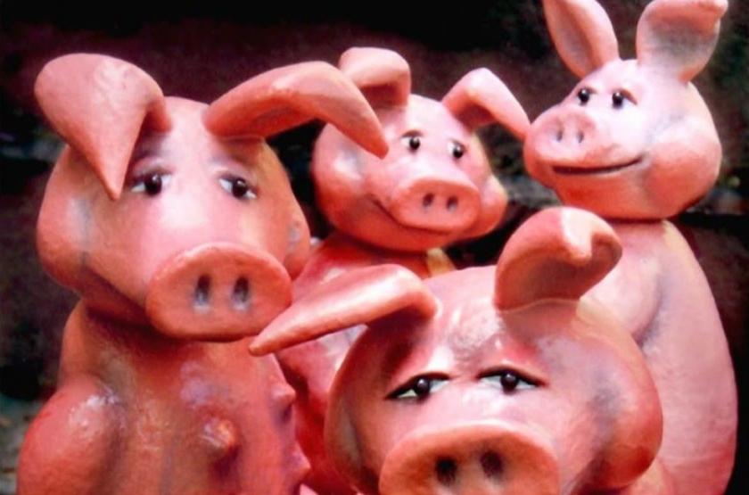 Ein fröhliches Puppenspiel mit wasserfesten Schweinen.