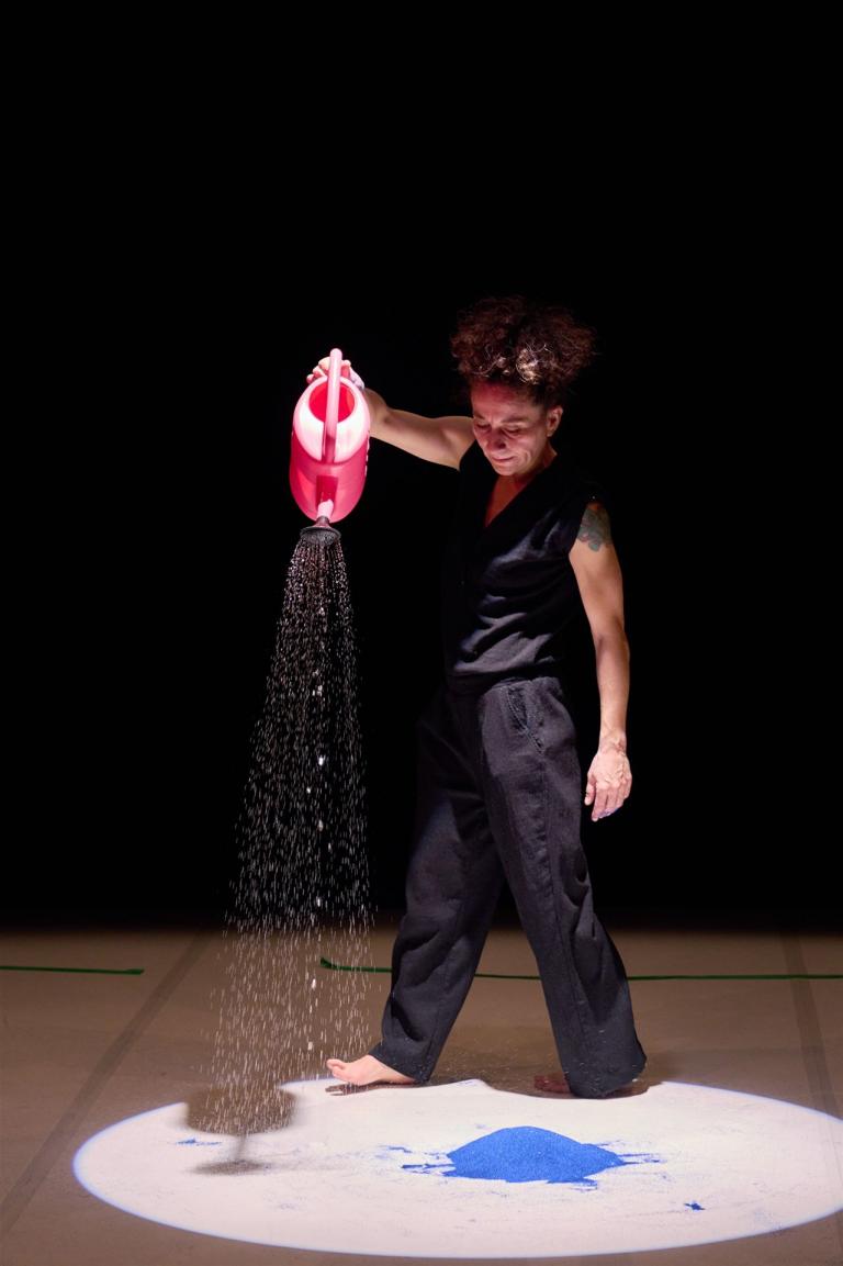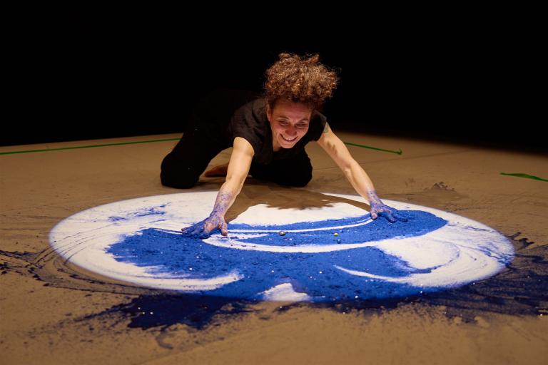 Es plätschert, knistert, raschelt und prasselt. Eine Tänzerin nimmt die kleinen Zuschauenden mit auf eine Entdeckungsreise. Sie entdeckt wärmenden Sand, erfrischendes Wasser und klingende Steine. Alles ist in ständiger Veränderung. Eben noch entstanden Sandburgen, schon schwemmt das Wasser sie weg und verborgene Schätze werden entdeckt. Lilian Mosquera verzaubert mit wenig Sprache das kleine Publikum mit tänzerischer Poesie, kraftvollen Bildern und Klängen.
